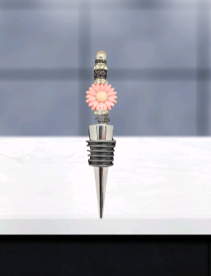 Pink Flower Black Accent Wine Stopper
